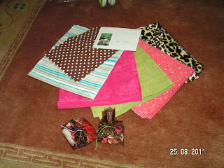 Druga paczuszka przywędrowała od Luli La same cuda cudeńka,śliczne bawełenki, sztruksiki, zwierzęce cętki, a w woreczkach ukryły się tasiemki, koronki, broszki i inne przydasie ,a na końcu wypadł liścik z życzeniami