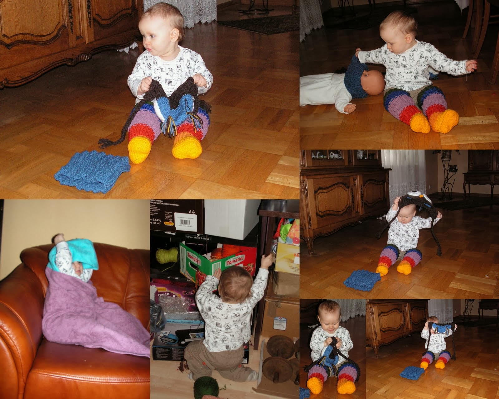 Nie dość że sobie czapę zdejmowała , to jeszcze lale rozbierała, we włóczkach grzebała, ręcznik z manekina ściągała,ot zbój nad zbóje rośnie.