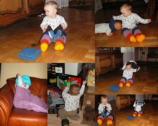 Dzisiaj trochę zdjęć, nie sa najlepsze bo modelka "zepsuła sie" . Jest dzieckiem marudno-pełazjąco-raczkująco-wstającym, trzeba mieć oczy dookoła siebie, bo jak błyskawica ciągnie ją do zakazanego. Starsza siostra też nie lepsza bo trzeba prace domowe odrabiać, wierszyków się uczyć i ciągle pilnować, bo robi sto milionów rzeczy jednocześnie, tylko nie to co trzeba.