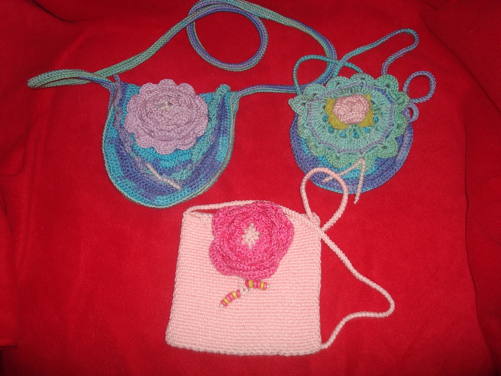 Torebki dla małych dziewczynek oraz kwiatowe breloczki.